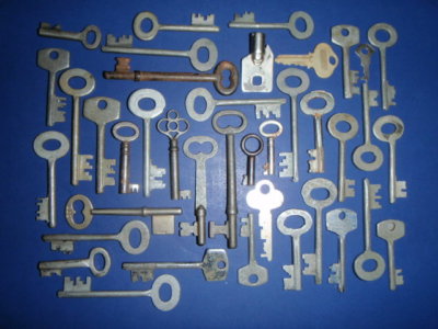 Antique Vintage old skeleton key lot furniture lock box