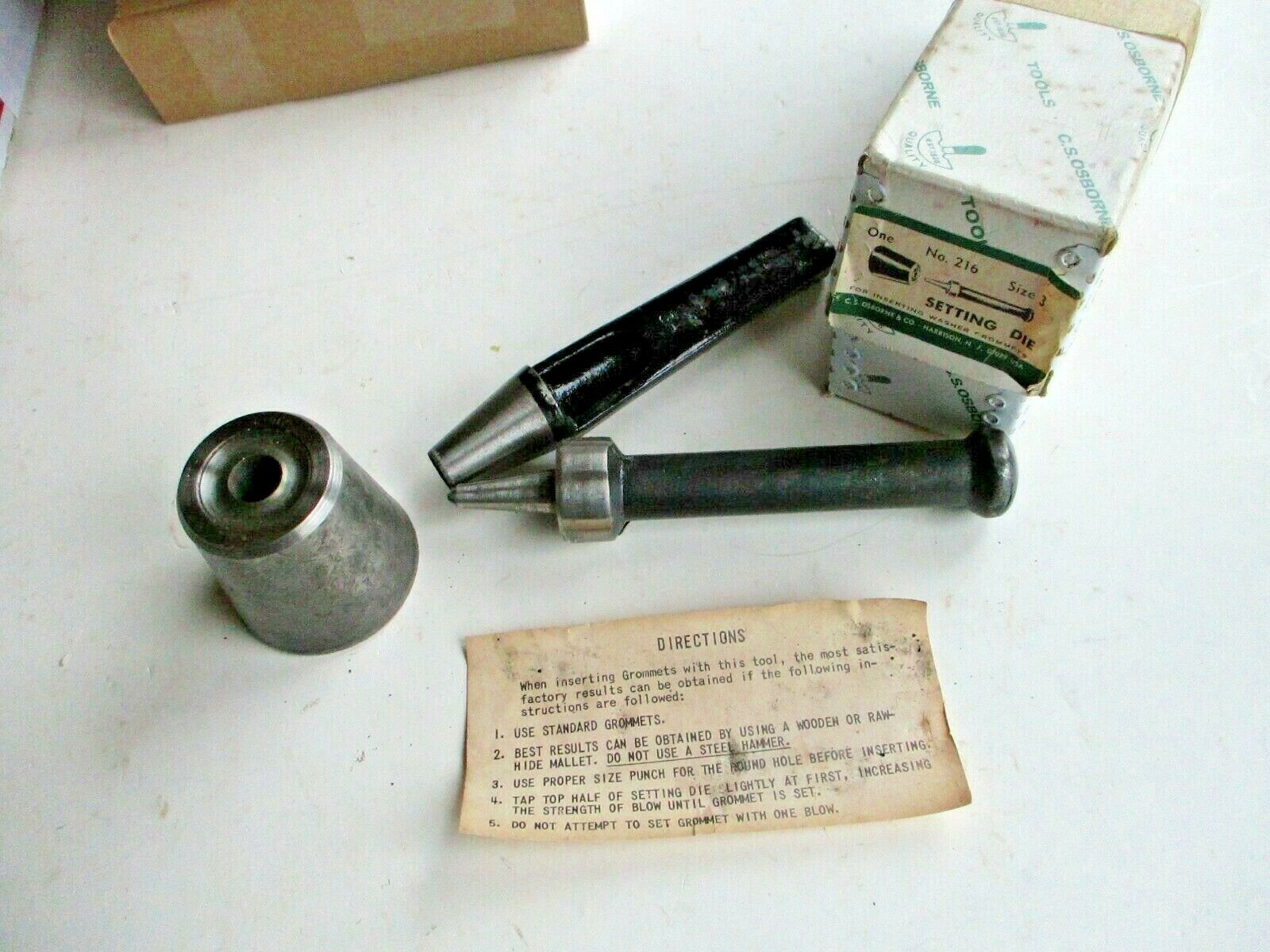 C.S.Osborne Tools #216-3 Setting Die,Grommets Punch & Original Box, Instructions