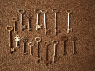 Title (ebay affiliate link): LOT OF 16 ANTIQUE VINTAGE DOOR FURNITURE SKELETON KEYS