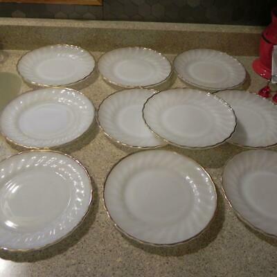 #0395 Vintage Anchor Hocking Fire King White Milk Glass Swirl Gold Trim 10 Plate