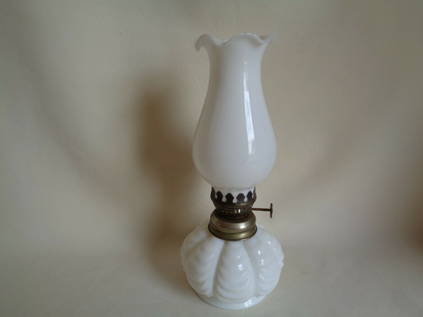VINTAGE OIL KEROSENE MILK GLASS MINIATURE LAMP