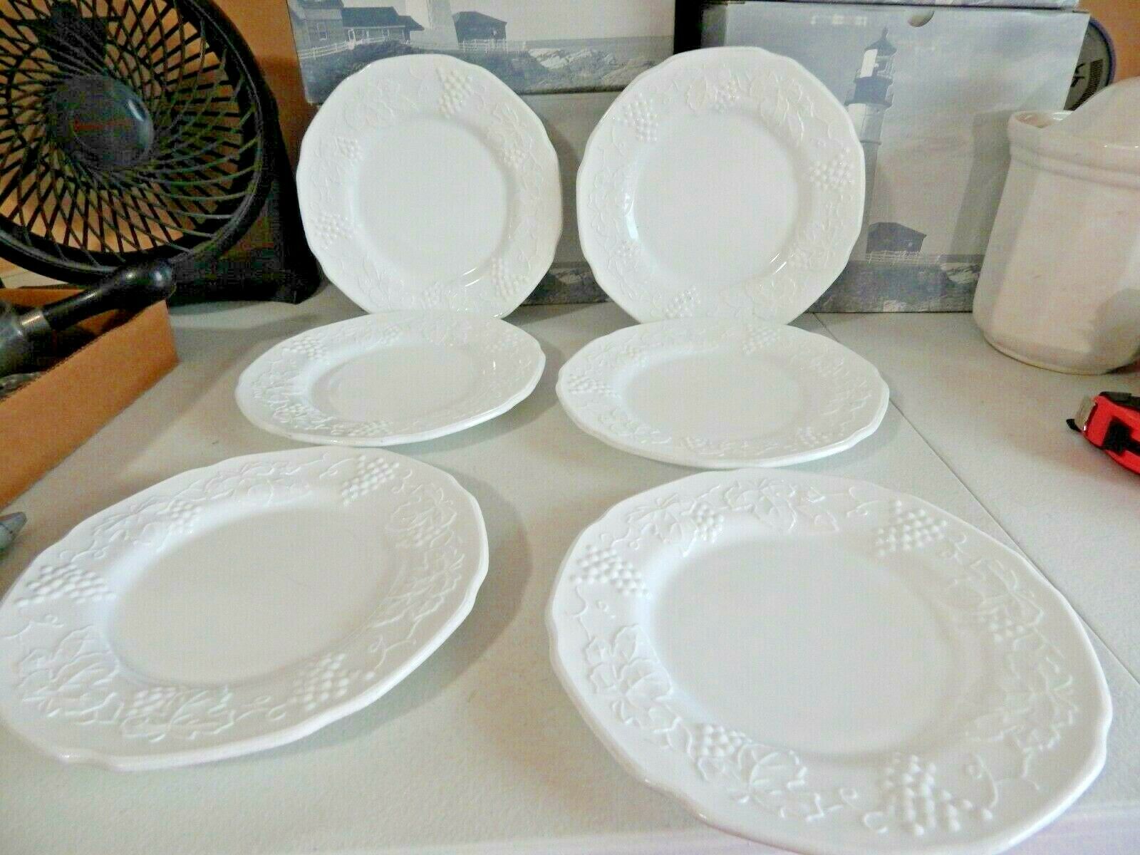 Indiana Glass Colony Milk Glass W/ Grapes Bread/Salad Plates Set of 6