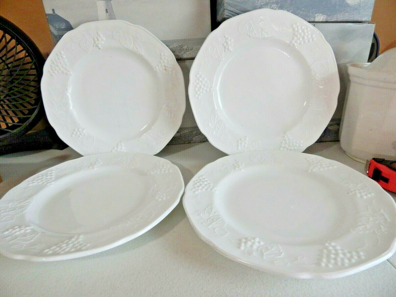Indiana Glass Colony Milk Glass W/ Grapes Set of 4 Dinner Plates