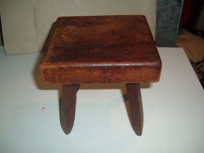 PRIMITIVE ANTIQUE SMALL WOODEN MILK / STEP STOOL VINTG.