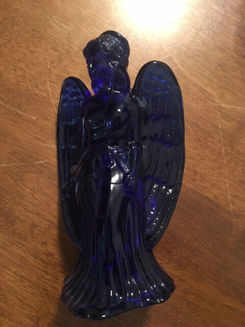 Title (ebay affiliate link): Vintage Cobalt Glass Angel Candle Holder Blue Glass Angel 6 1/2"