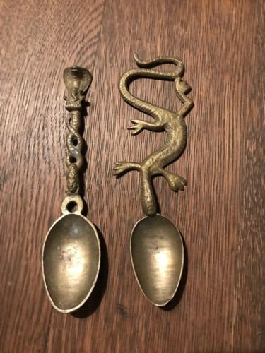 Title (ebay affiliate link): TIBETAN INDIAN VINTAGE HANDCRAFTED UNIQUE BRASS TEMPLE SPOONS