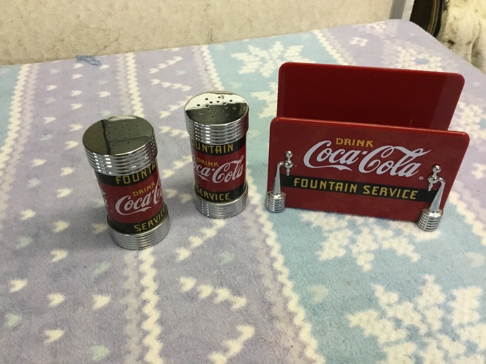 Coca-Cola 1997 Fountain Service Salt & Pepper Shakers And Napkin Holder