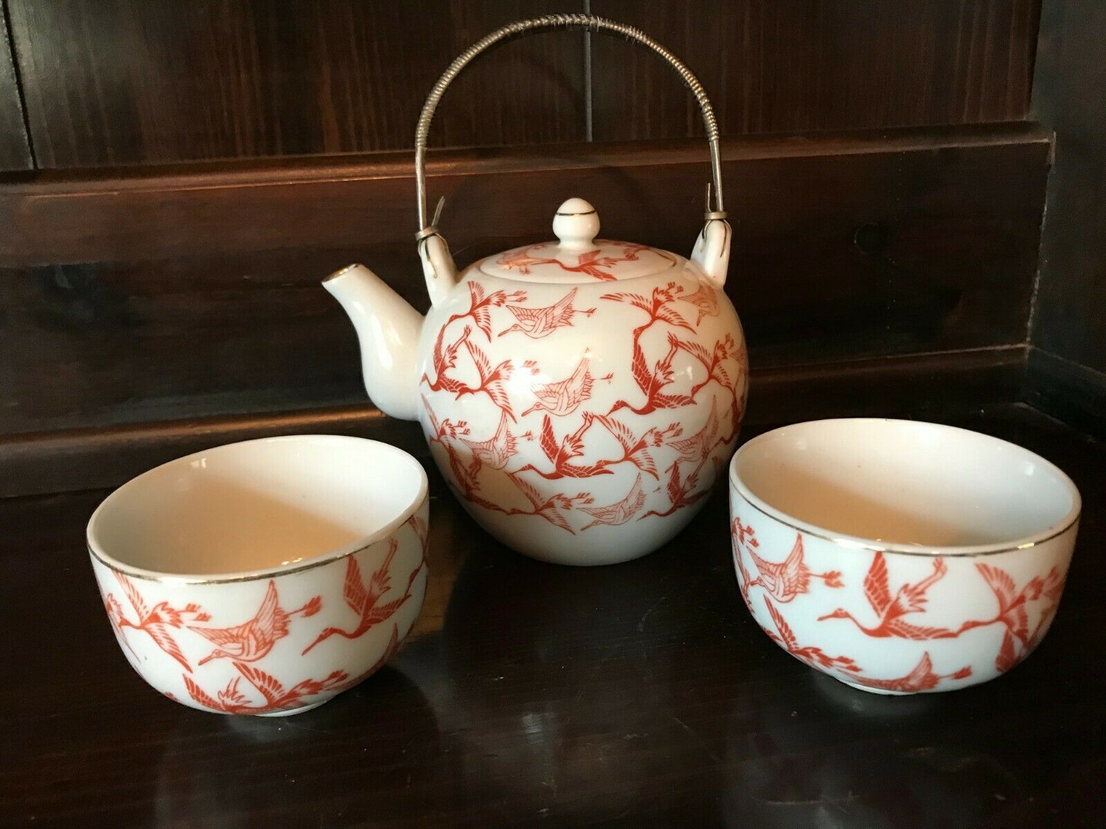 Title (ebay affiliate link): Occupied Japan Teapot & 2 Matching Cups with Flying Cranes & Metal Handle