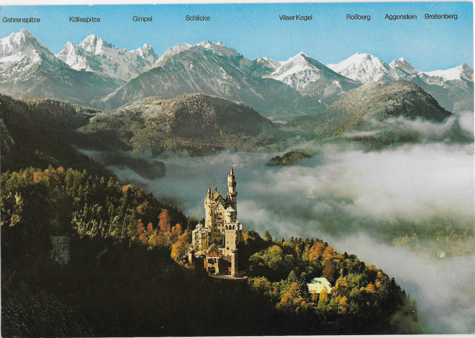 Title (ebay affiliate link): Neuschwanstein Castle with Alps view Bavaria Germany postcard
