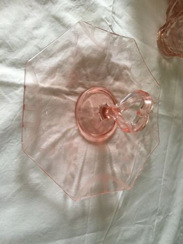 Title (ebay affiliate link): Vtg Pink Depression Glass Cake Cookie Serving Platter With Handle