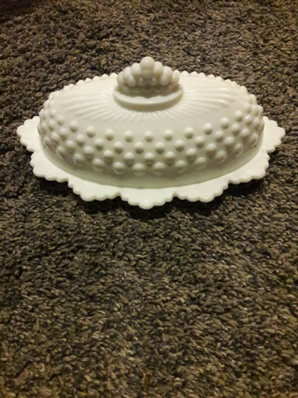 Title (ebay affiliate link): Fenton Hobnail Vintage White Milk Glass Butter Dish Excellent condition!