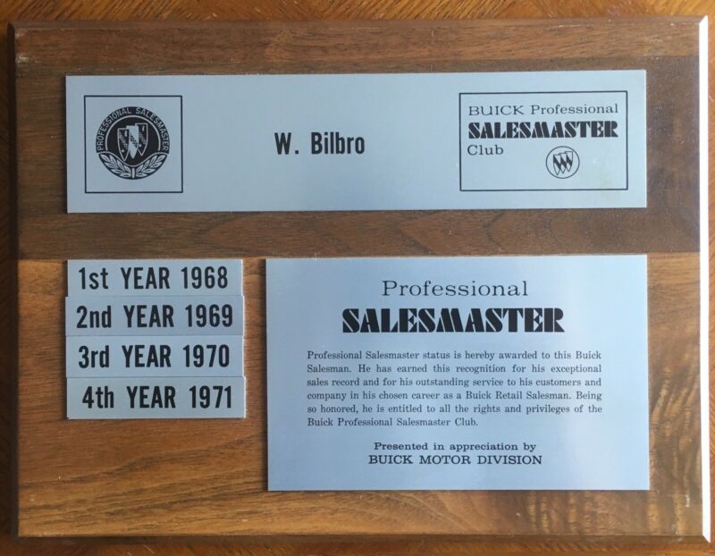 Title (ebay affiliate link): 1968 Buick Motor Divison Professional Salesmaster Club Plaque Vintage Very Rare