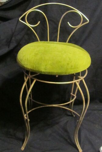 Title (ebay affiliate link): VINTAGE BRASS TONE METAL GREEN VELVET BATHROOM BEDROOM VANITY SWIVEL CHAIR