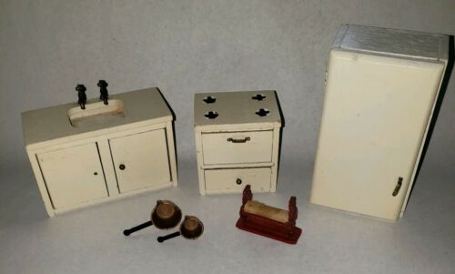 Lot Vintage Dollhouse Solid Wood Furniture Kitchen appliances Room White