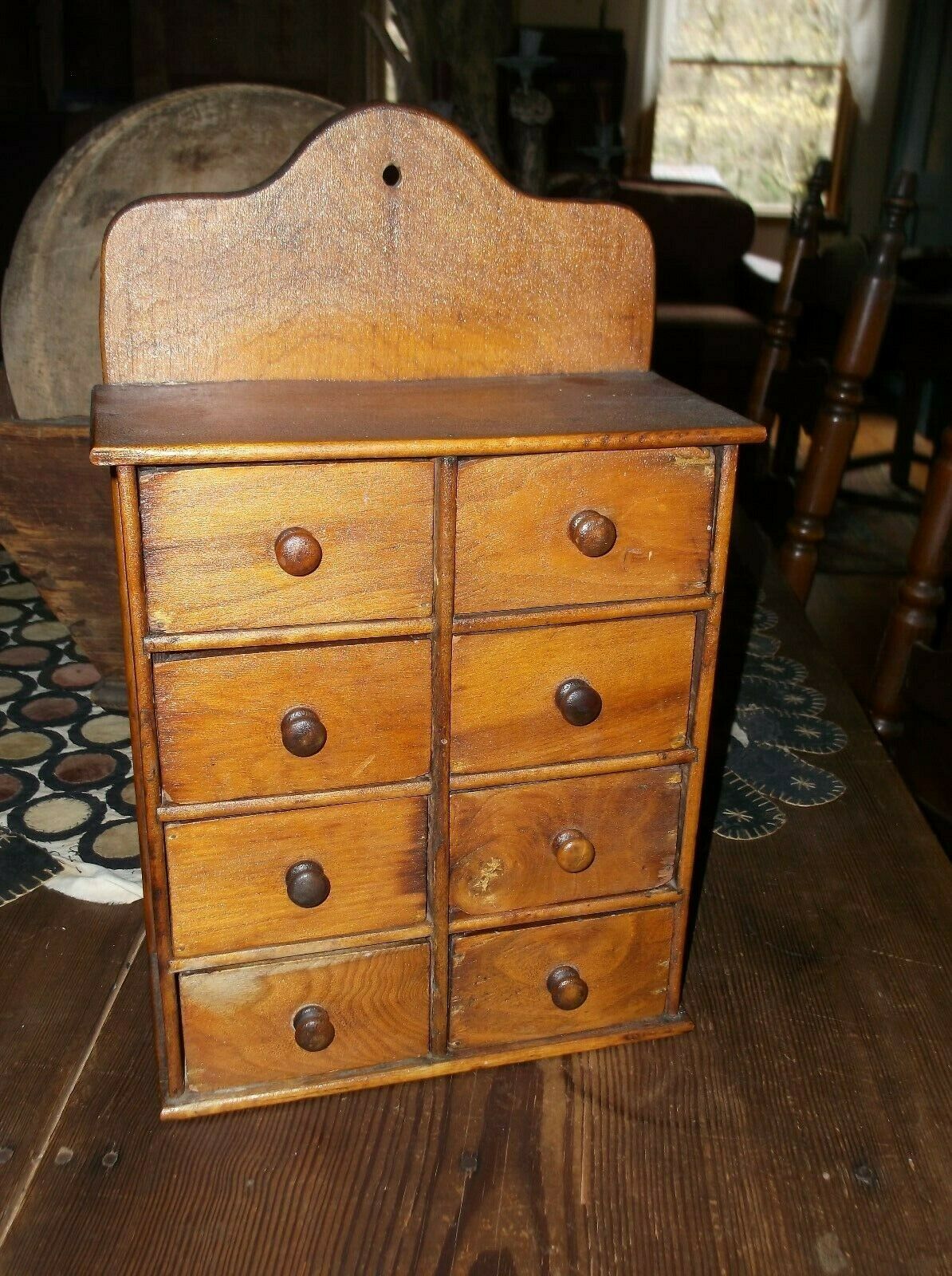 Title (ebay affiliate link): AAFA EARLY ANTIQUE EIGHT DRAWER MAPLE WOOD SPICE APOTHECARY CABINET