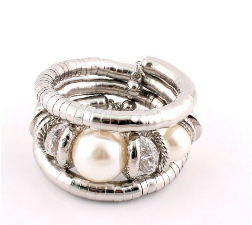 Charm Boho Designer Crystal Antique Silver Ball Beaded Layers Bracelet Bangle