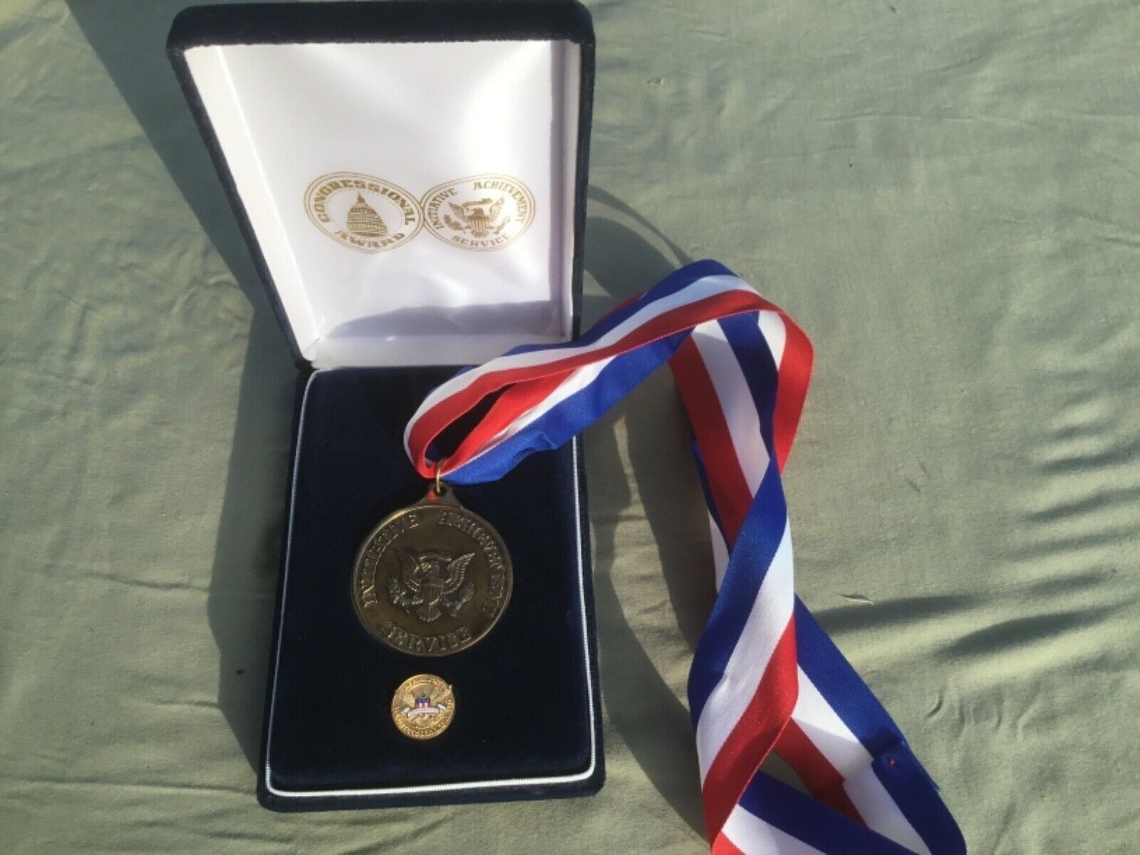 Title (ebay affiliate link): bronze congressional medal award + the Presidents volunteer service award. Case