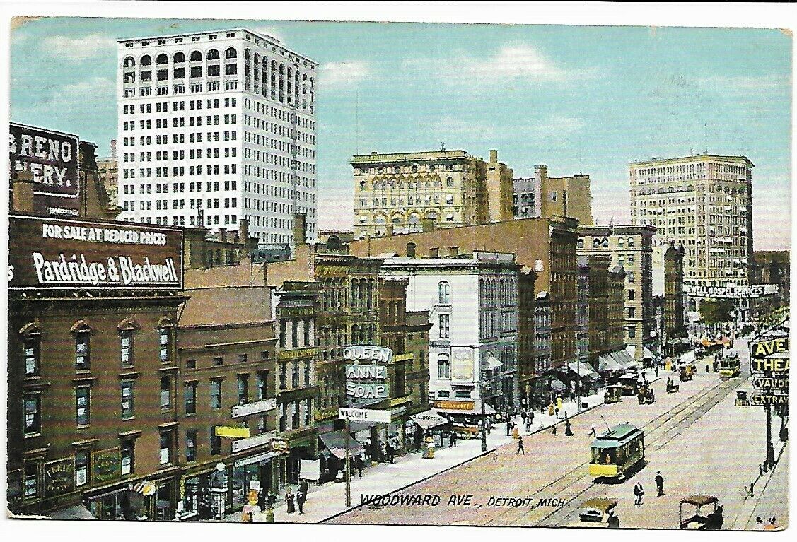 Title (ebay affiliate link): POSTCARD WOODWARD AVE. DETROIT, MI. 1908... STREET CAR''S, HORSE & BUGGY''S