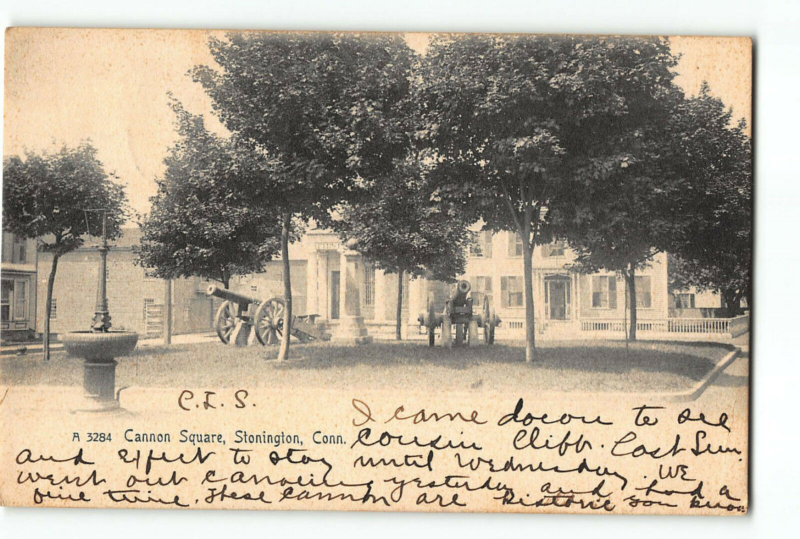 Stonington Connecticut CT Postcard 1907 Cannon Square