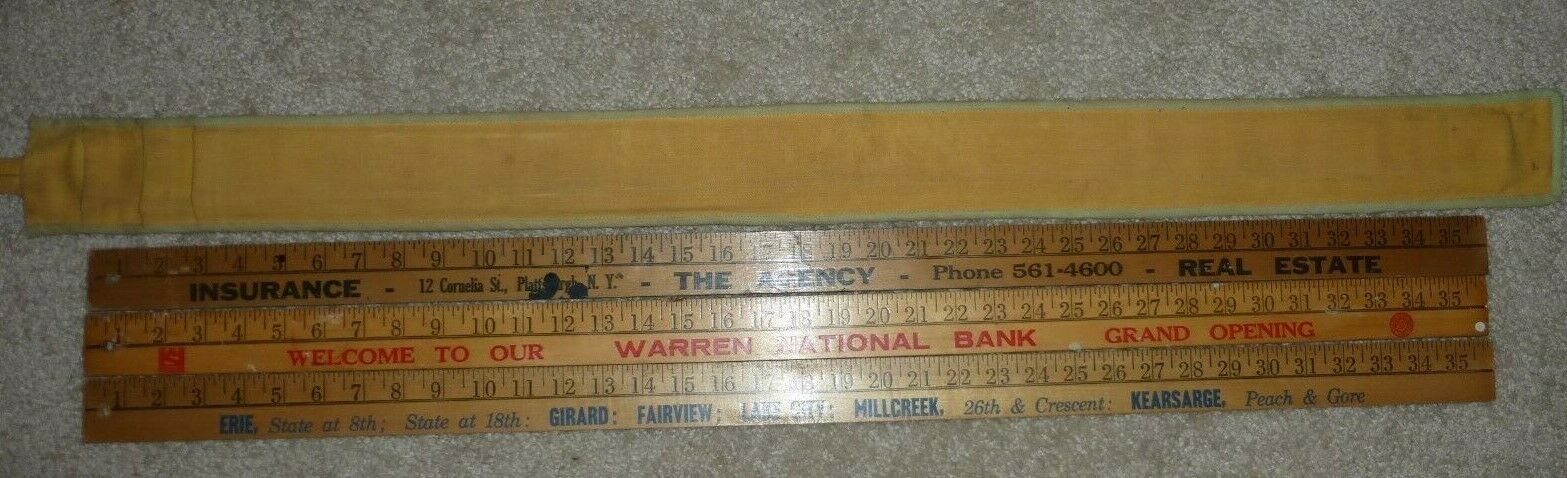 Wood yardstick vintage 36" x 1 1/2" wide lot of 3 with wall hanger for 3 yard