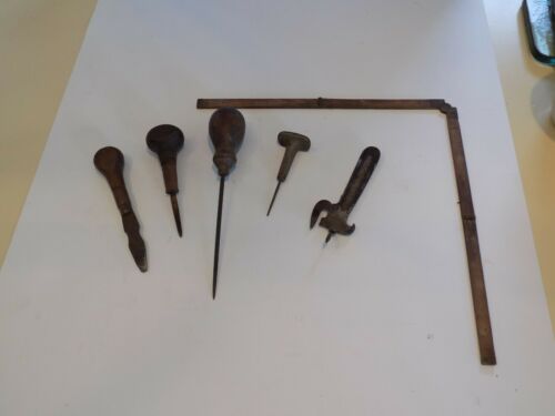 Title (ebay affiliate link): VINTAGE WOODEN HANDLE TOOL LOT....AWL,SCRAPER,CHISEL,TILE SCRAPER, FOLDING RULER
