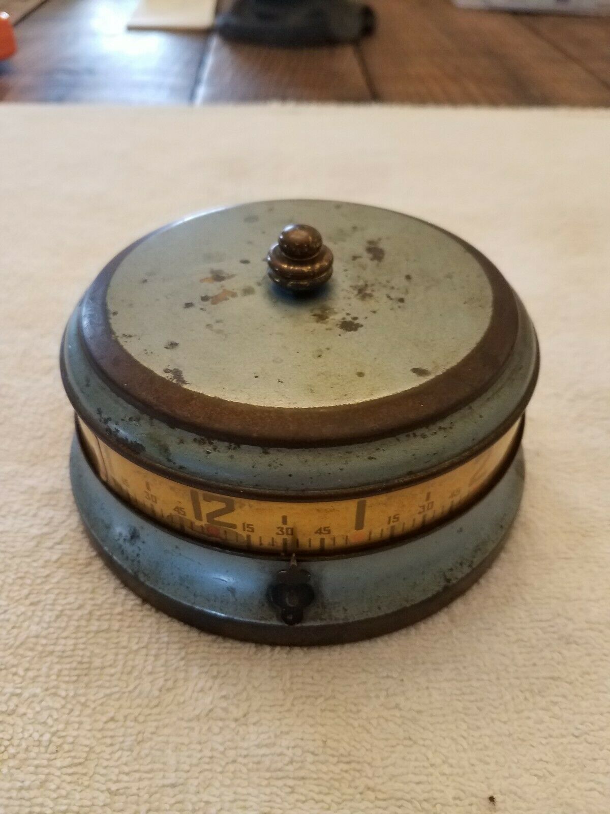 Title (ebay affiliate link): Antique Vintage Clock Unique Metal Round Sets Flat Wind-up USA "WORKS"