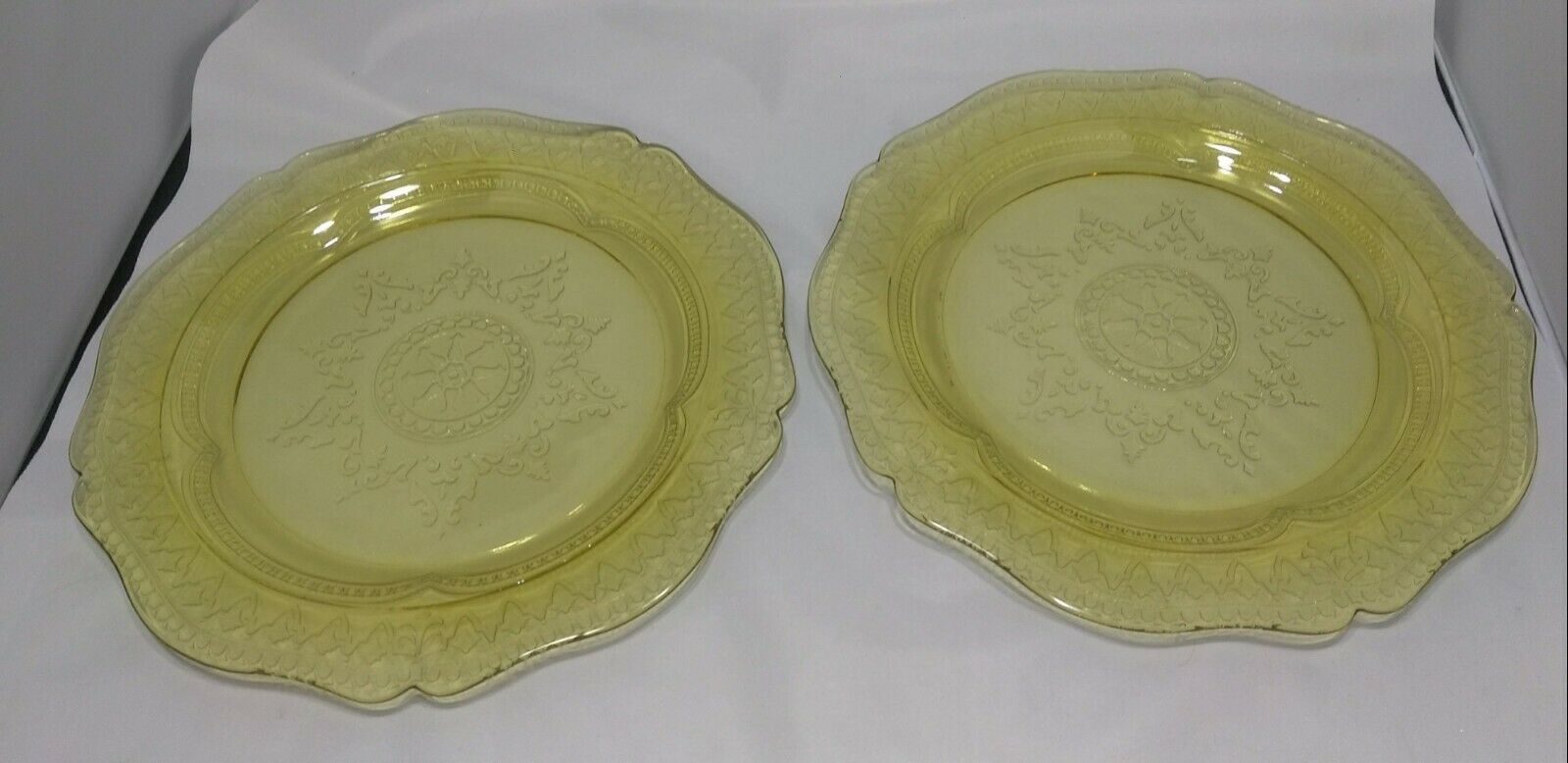2 Vintage Federal Depression Glass Patrician Spoke Pattern Yellow 11"