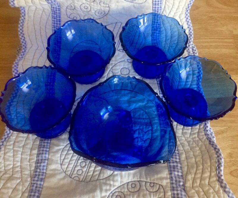 Vintage Depression Glass Bowls Cobalt Blue Set?