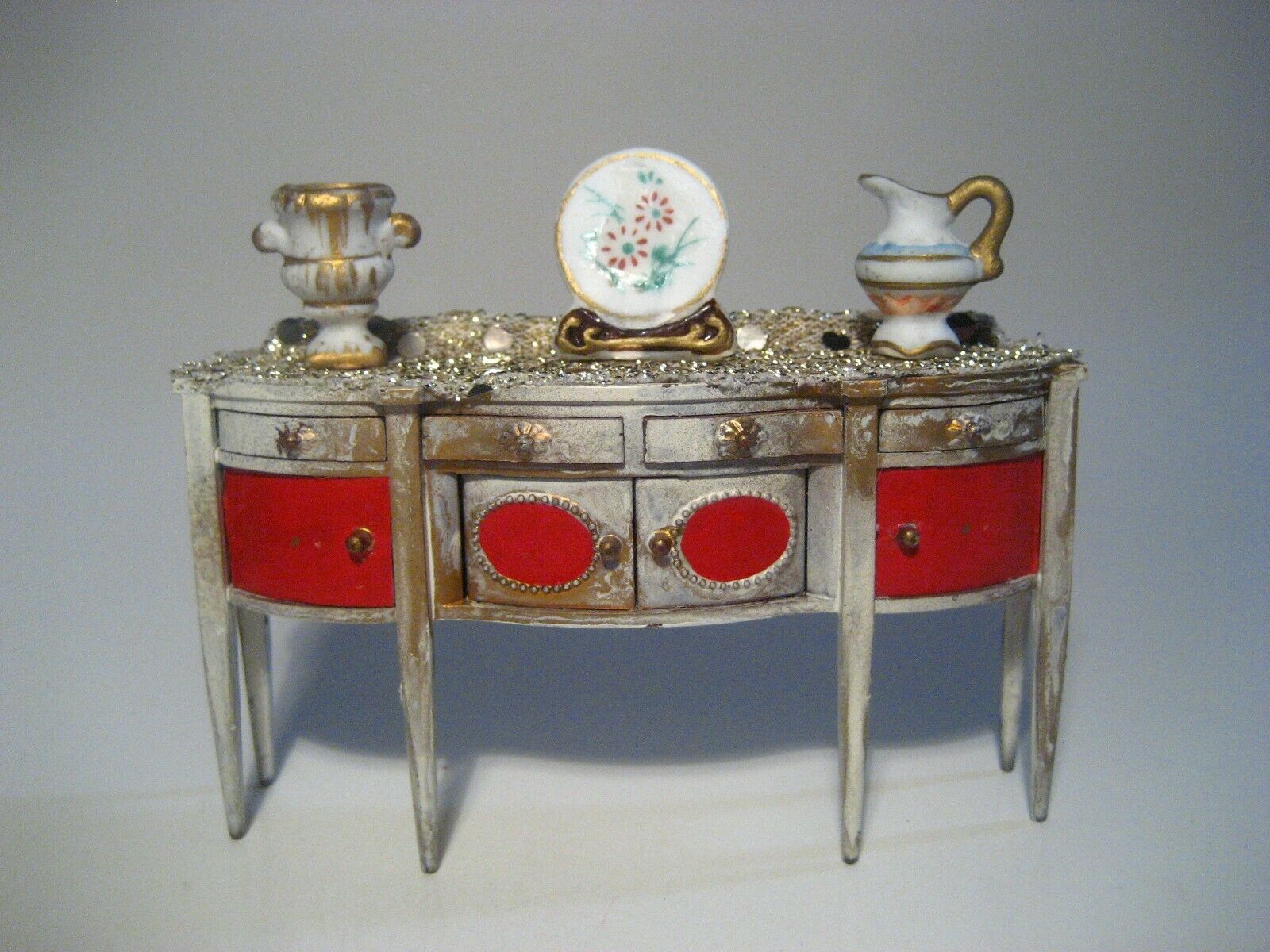 VINTAGE DOLLHOUSE FURNITURE BUFFET WITH IDEAL PETITE PRINCESS ACCESSORIES OOAK