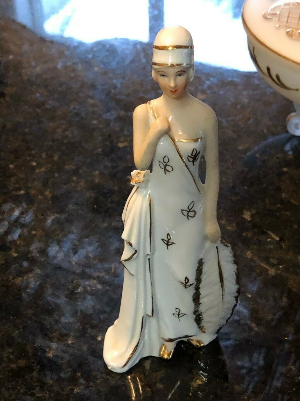 Title (ebay affiliate link): Vintage Art Deco Porcelain Flapper Lady Figurine in White, Elegant lady