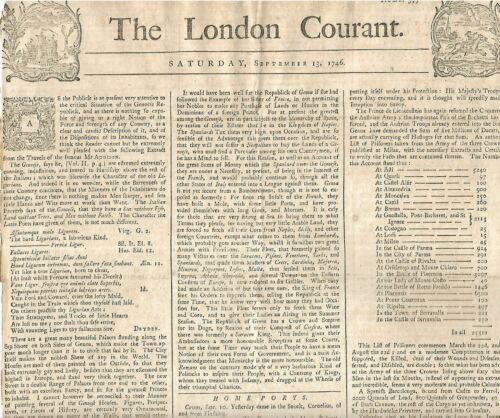 Title (ebay affiliate link): Orig. 1746 English newspaper "THE LONDON COURANT" September 13, 1746