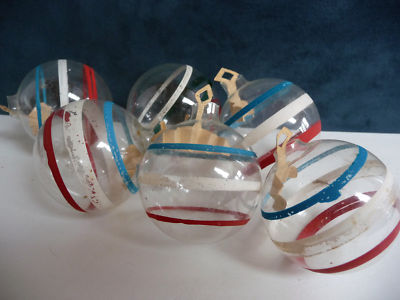 Title (ebay affiliate link): VTG 6 WWII UNSILVERED PAPER HANGER XMAS GLASS ORNAMENTS