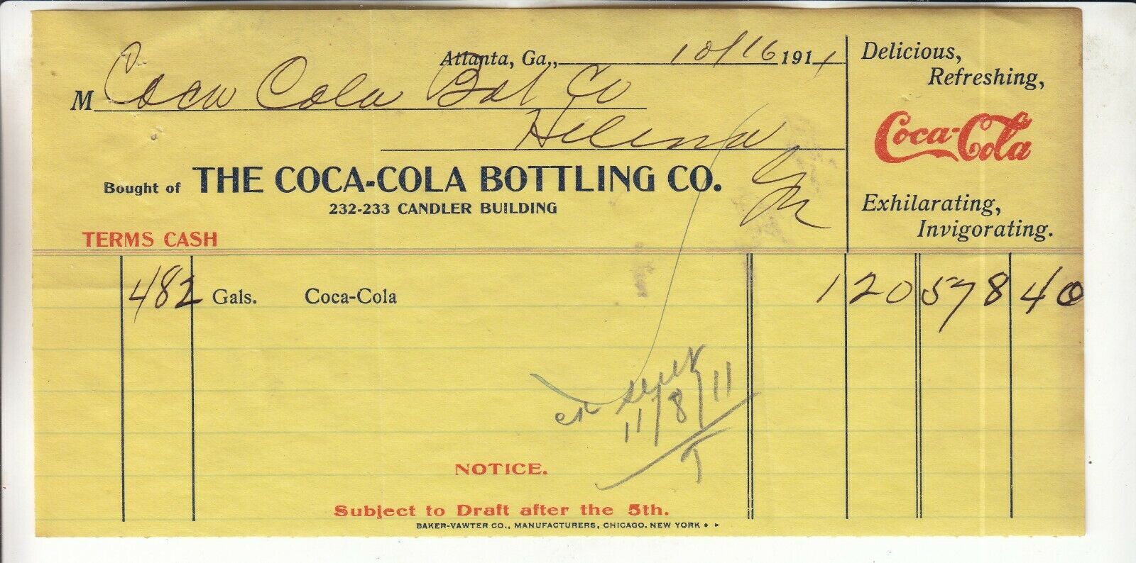 Title (ebay affiliate link): THE COCA-COLA BOTTLING CO. ATLANTA GA. INVOICE, Dated 10/16 1911 108 YEARS OLD