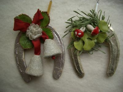 Title (ebay affiliate link): 2 VINTAGE cardboard horseshoe Christmas Ornament #21