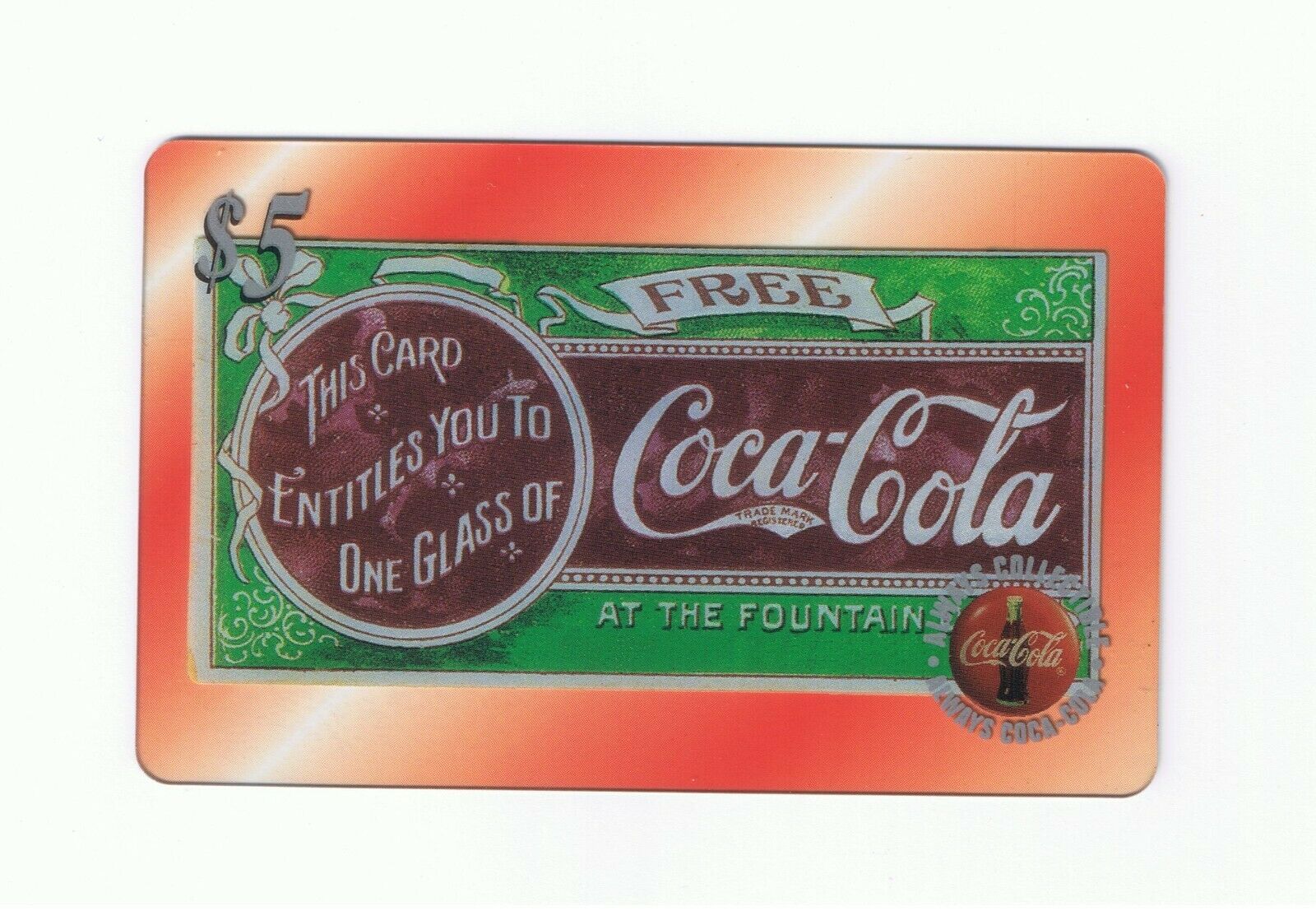 1996 The Score Board Coca-Cola Sprint Acetate Unused $5 Phone Card #5