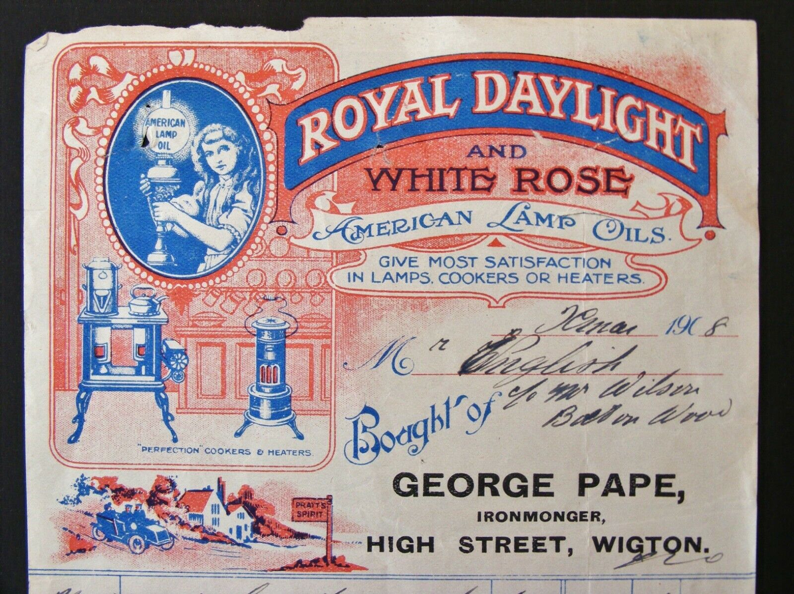 Title (ebay affiliate link): Illustrated Advertising Billhead / Invoice - ROYAL DAYLIGHT & WHITE ROSE OILS