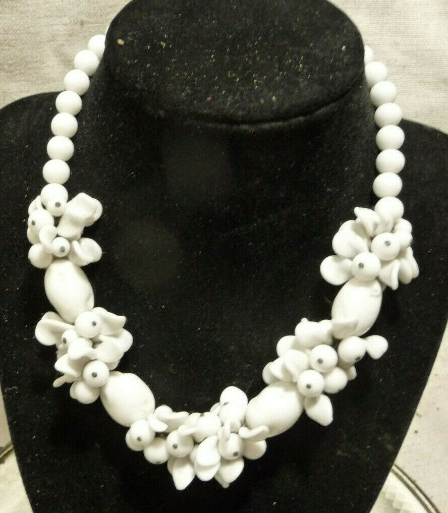 Title (ebay affiliate link): Vintage Milk Glass Fruit Leaf Trifari Haskell Necklace Bridal Flower Petals