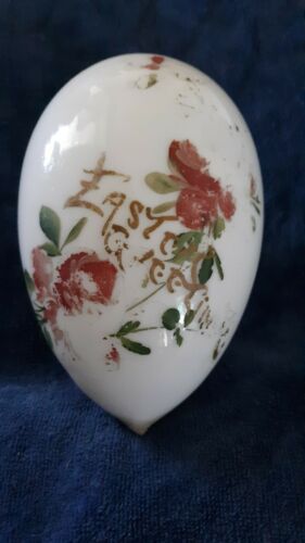 Antique Victorian Lg Blown Milk Glass Hand Painted Floral Easter Greetings Egg