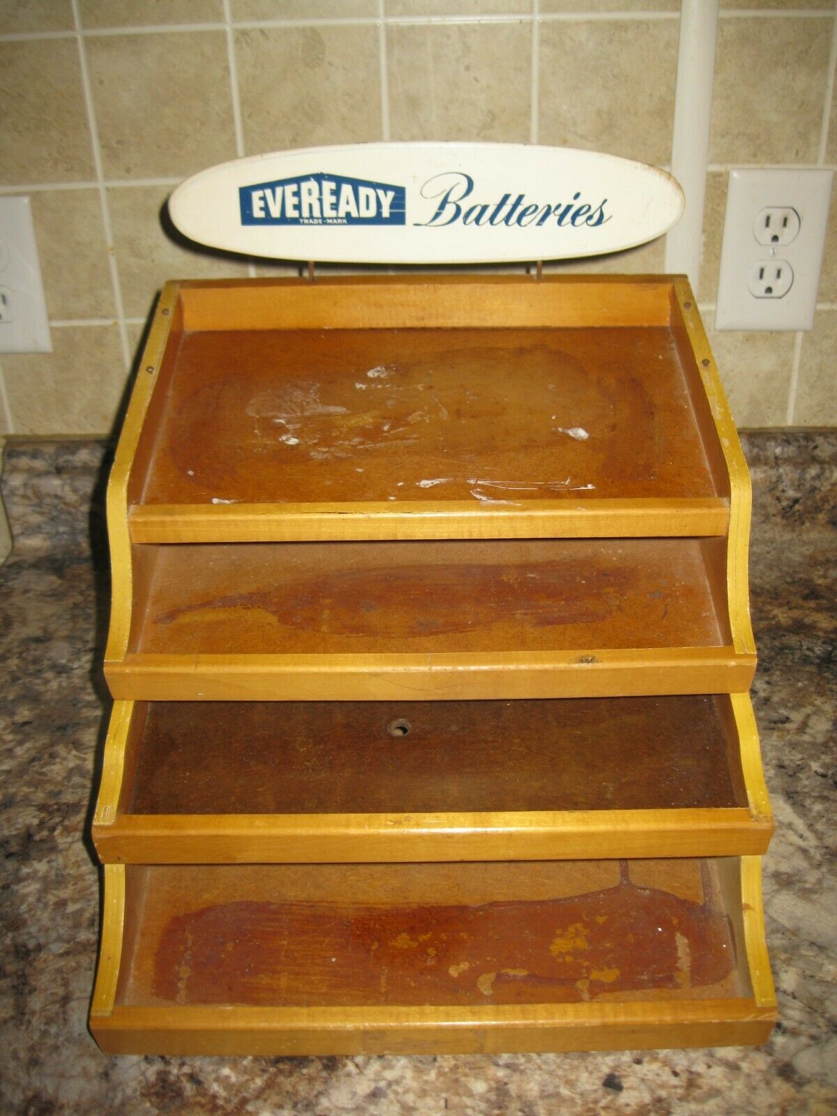 Vintage Eveready Batteries Union Carbide Wooden 4 Shelves Counter Display Rack