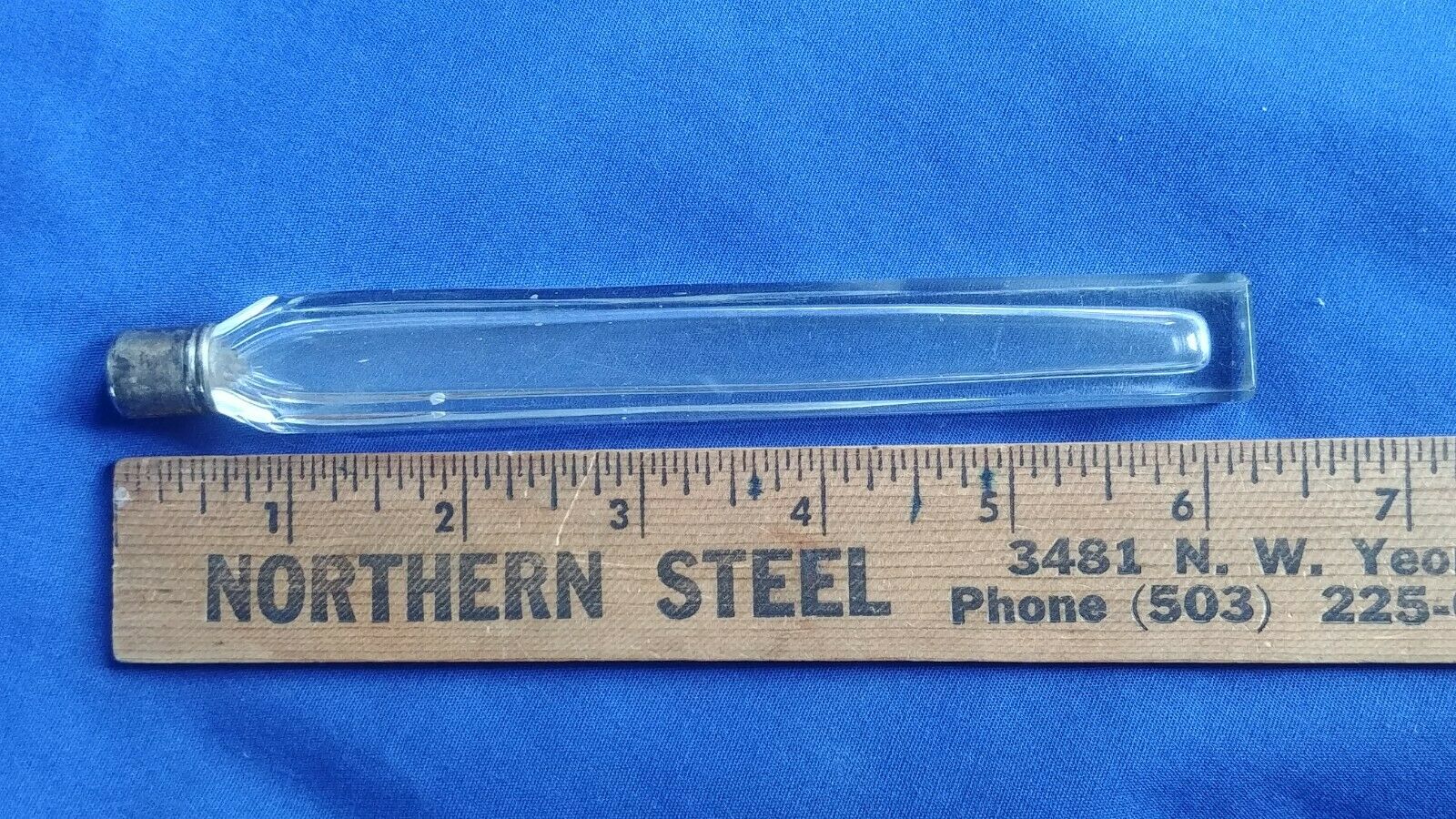 Title (ebay affiliate link): Antique Perfume Bottle Lay Down 6 1/4" Silver Screw Lid w. Stopper Crystal