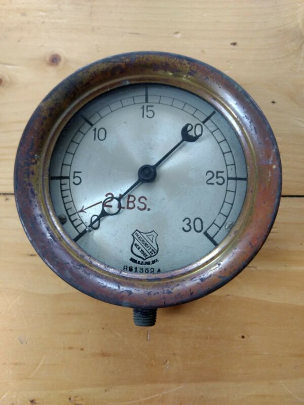 Title (ebay affiliate link): Vintage Ashcroft Pressure Gauge 0-30 PSI Brass Bezel