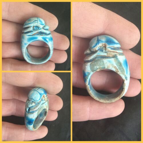 Title (ebay affiliate link): Rare ancient Egyptian blue faience scarab beetle amulet ring , 300 bc