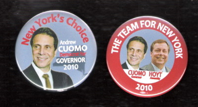 2 ANDREW CUOMO Governor, HOYT coattail NY 2010 buttons
