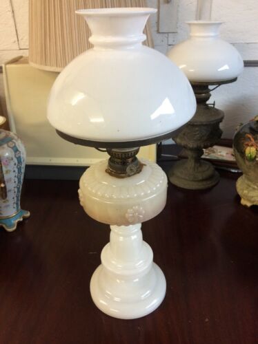 Antique Victorian White Glass And Brass Oil Lamp
