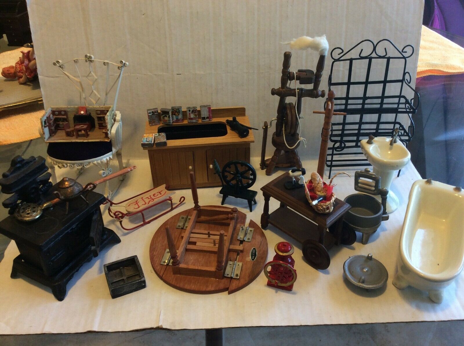 Title (ebay affiliate link): Vintage Dollhouse Furniture and Miniature Accessories Large Lot Metal Wood