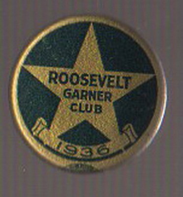 Roosevelt Garner Club 1936 Small Campaign Button FDR