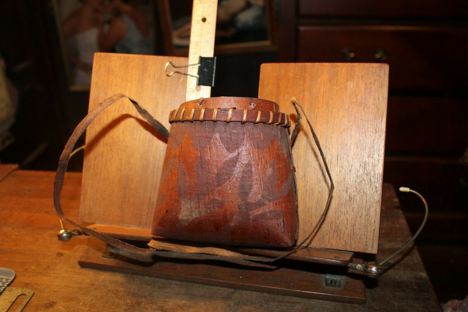 Title (ebay affiliate link): Antique Small 5" Birch Bark Basket Bag With Lid