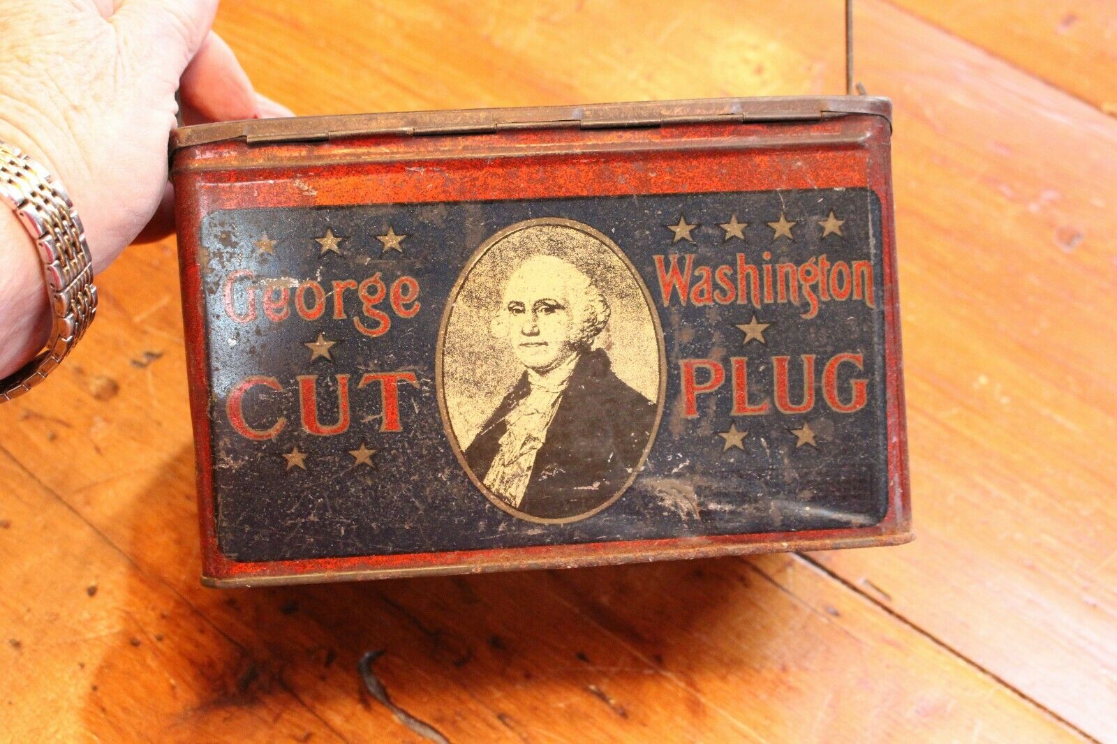 Title (ebay affiliate link): Vintage George Washington Cut Plug Tobacco Tin Smoke Chew w Handle & Lid