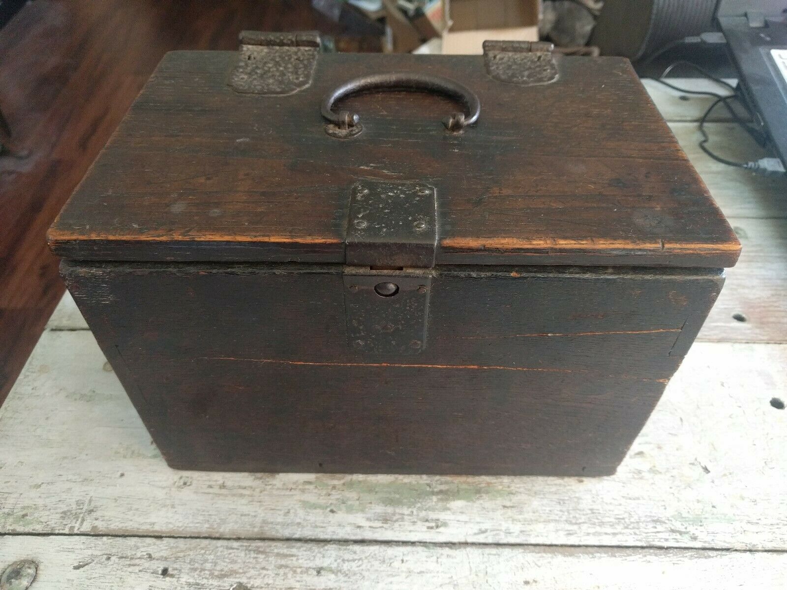 Title (ebay affiliate link): Antique Wooden box Primitive Early American Folk Art Unique piece GREAT hardware