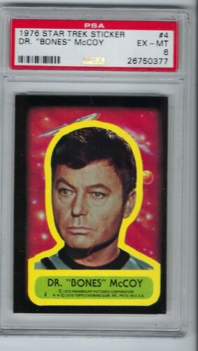 Title (ebay affiliate link): 1976 Topps Star Trek Sticker #4 Dr. "Bones" McCoy EX-MT PSA 6